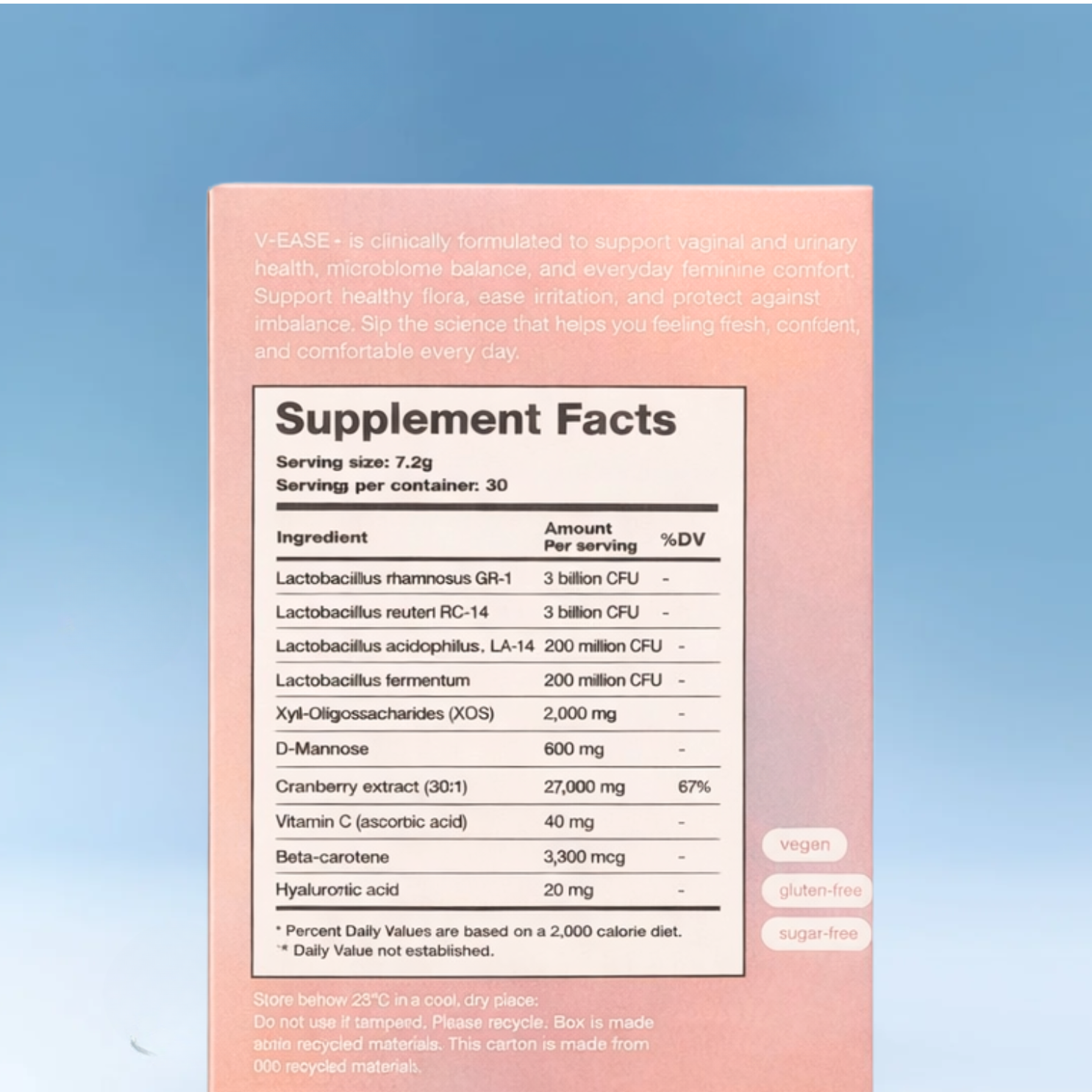 Vaginal Probiotics, Xylo-oligosaccharides, D-Mannose, Beta-carotene, Hyaluronic acid, Cranberry PACs, Bromelain