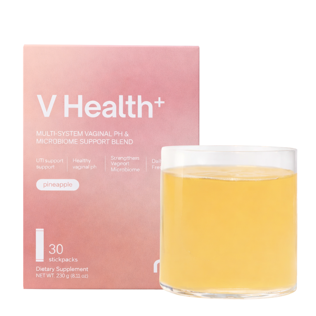 V Health+ is designed to be taken once daily. Consistent daily use helps support a balanced vaginal microbiome, healthy pH levels, and ongoing urinary tract comfort over time.